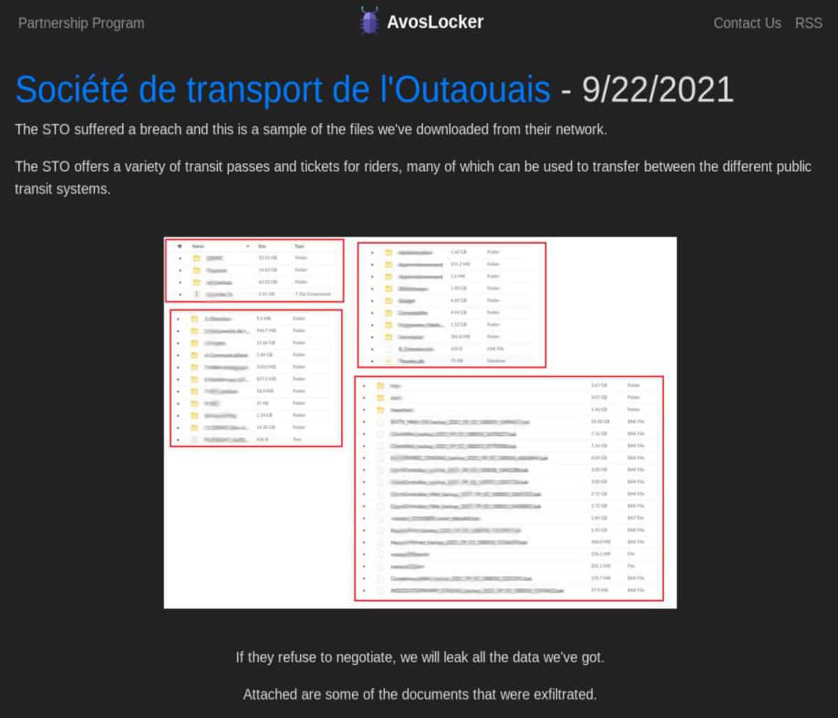 Contacté par courriel, le groupe AvosLocker a répondu qu’il a environ 115 GB de données» en sa possession et qu’il s’agit principalement de «bases de données». Le représentant du groupe criminel affirme que la majorité des données «seront rendues publiques» advenant que la STO ne collabore pas. Il dit que l’affilié responsable de cette attaque a «reçu des offres» pour l’achat d’une portion des données, sans préciser la nature de ces données.